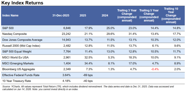 The fourth quarter of 2025 capped an extraordinary year for markets, though the ride was anything but smooth. The longest government shutdown in U.S. history began on October 1 and dragged on for 43 days. And yet, markets proved remarkably resilient.